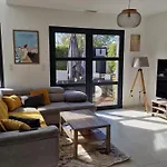 Situé à moins de 25 minutes de marche de l'Aqualand Cap d'Agde, Maison Moderne 300M De La Plage Rochelongue Agde dispose d'une terrasse avec une vue sur le jardin.